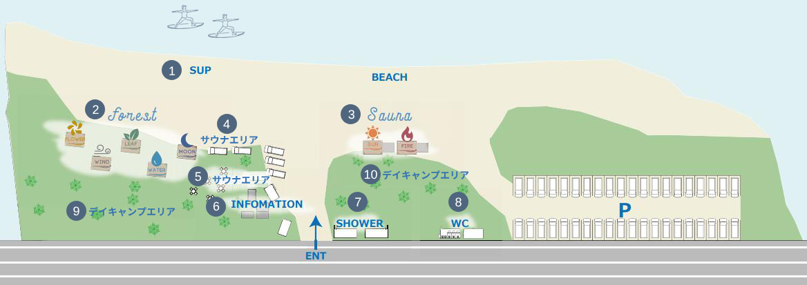 1SUPエリア木陰で集まってゆったりできるスペース!